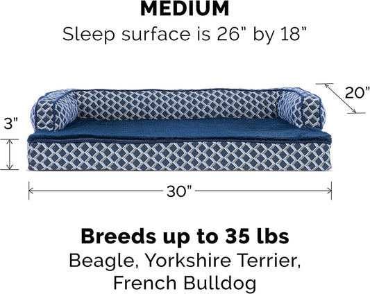 Memory Foam Dog Bed with Removable Bolsters and Washable Cover for Medium and Small Dogs up to 35 lbs - Plush Woven Design in Diamond Blue, Medium Size