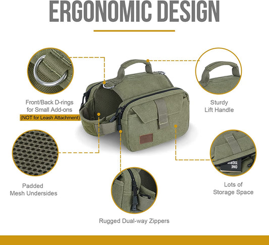 Medium & Large Dog Hiking Backpack Saddle Bag - Ranger Green, Large