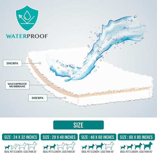 Premium Waterproof Dog Blanket for Small to Medium Breeds, Soft Sherpa Throw for Couch Protection, Reversible Plush Bed Blanket for Cats and Puppies, Washable Pet Pad (Taupe Camel, 24"x32")